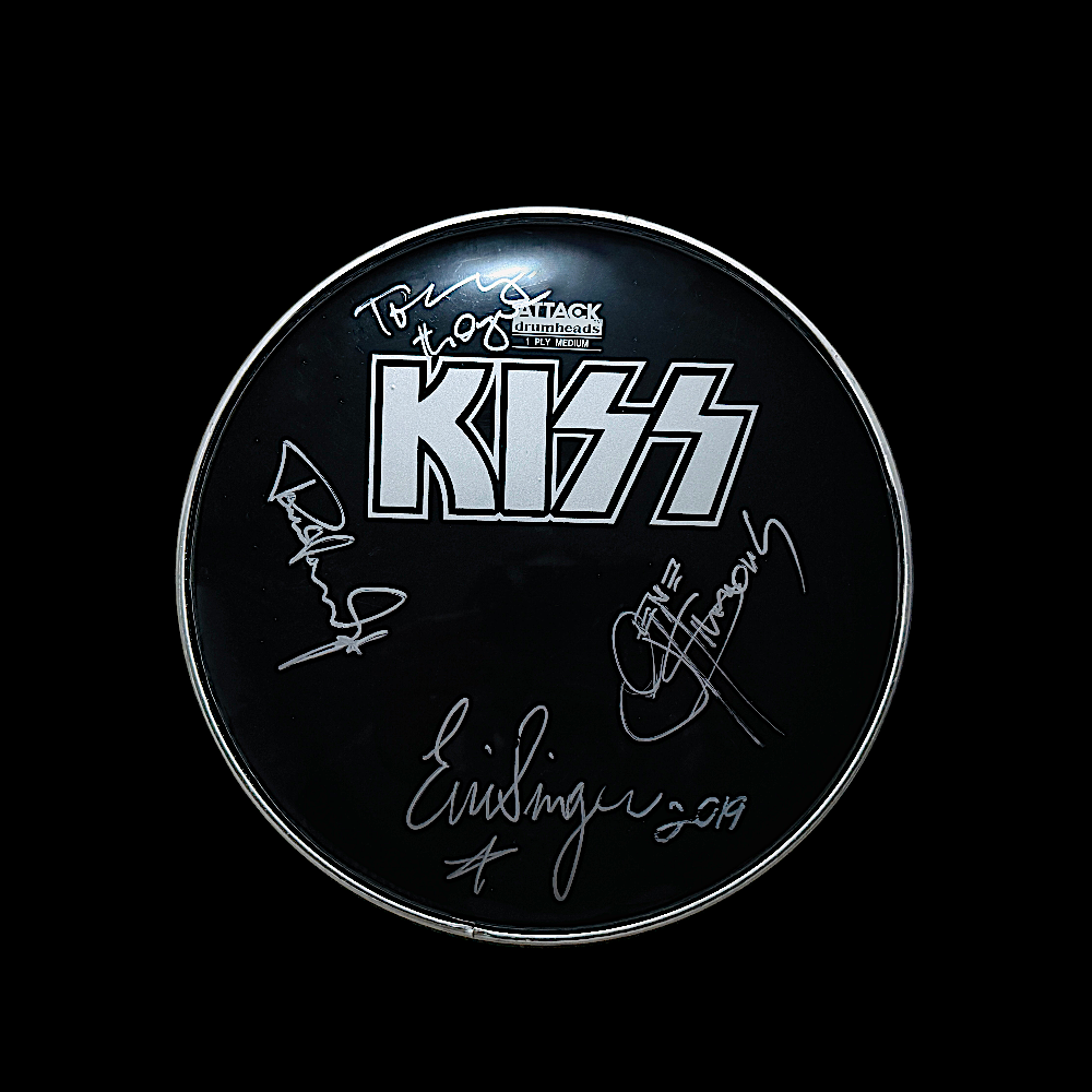 Rock history in your hands! This drumhead is hand-signed by KISS and perfect for display or adding to any music memorabilia collection.
