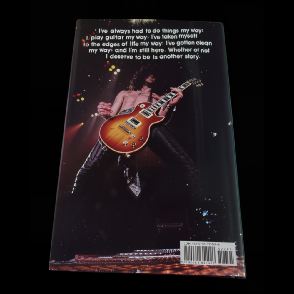 Authentic autograph on Slash’s autobiography. A rare collectible for rock fans and music memorabilia collectors.